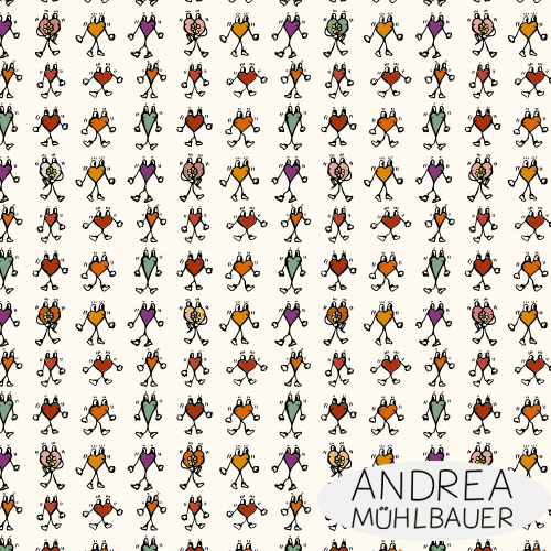 Mein Name ist Andrea Mühlbauer. Ich bin Pattern und Surface Designerin, Stickereimeisterin und Schneiderin aus dem schönen Süd-Osten Bayerns. Meine farbenfrohen und handgezeichneten Designs sind meist inspiriert von Pflanzen, Tieren, Texturen und abenteuerlichen oder fantastischen Themen.